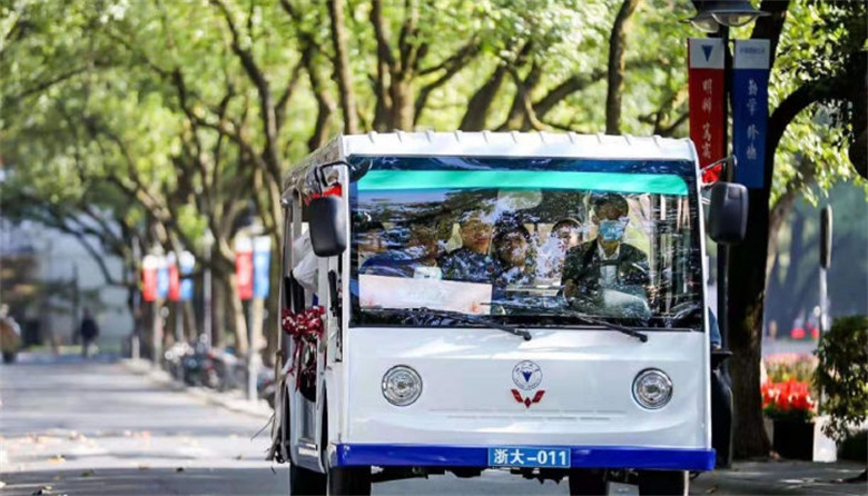浙江大学(Zhejiang University),简称“浙大”,是中华人民共和国教育部直属的综合性全国重点大学,中央直管副部级建制,位列首批“世界一流大学和一流学科”、“211工程”、“985工程”,为九校联盟(C9)、中国大学校长联谊会、环太平洋大学联盟、世界大学联盟、全球大学校长论坛、全球高校人工智能学术联盟、国际应用科技开发协作网、新工科教育国际联盟、全球能源互联网大学联盟、CDIO工程教育联盟、医学“双一流”建设联盟成员。图为浙江大学最新采购的校园电动观光车。